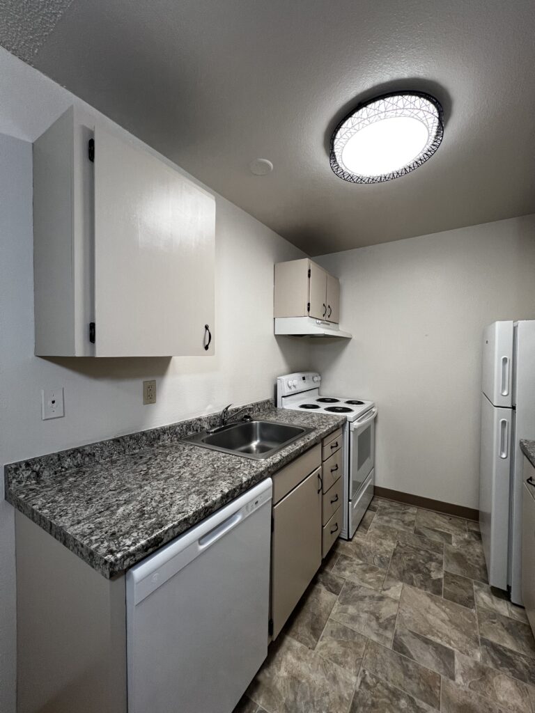 This complex is set in a quiet neighborhood and offers studio, 1 and 2 bedroom units. There is a pool, open through the summer months and a large updated laundry facility on-site. Each unit has a large patio/balcony and new vinyl windows.